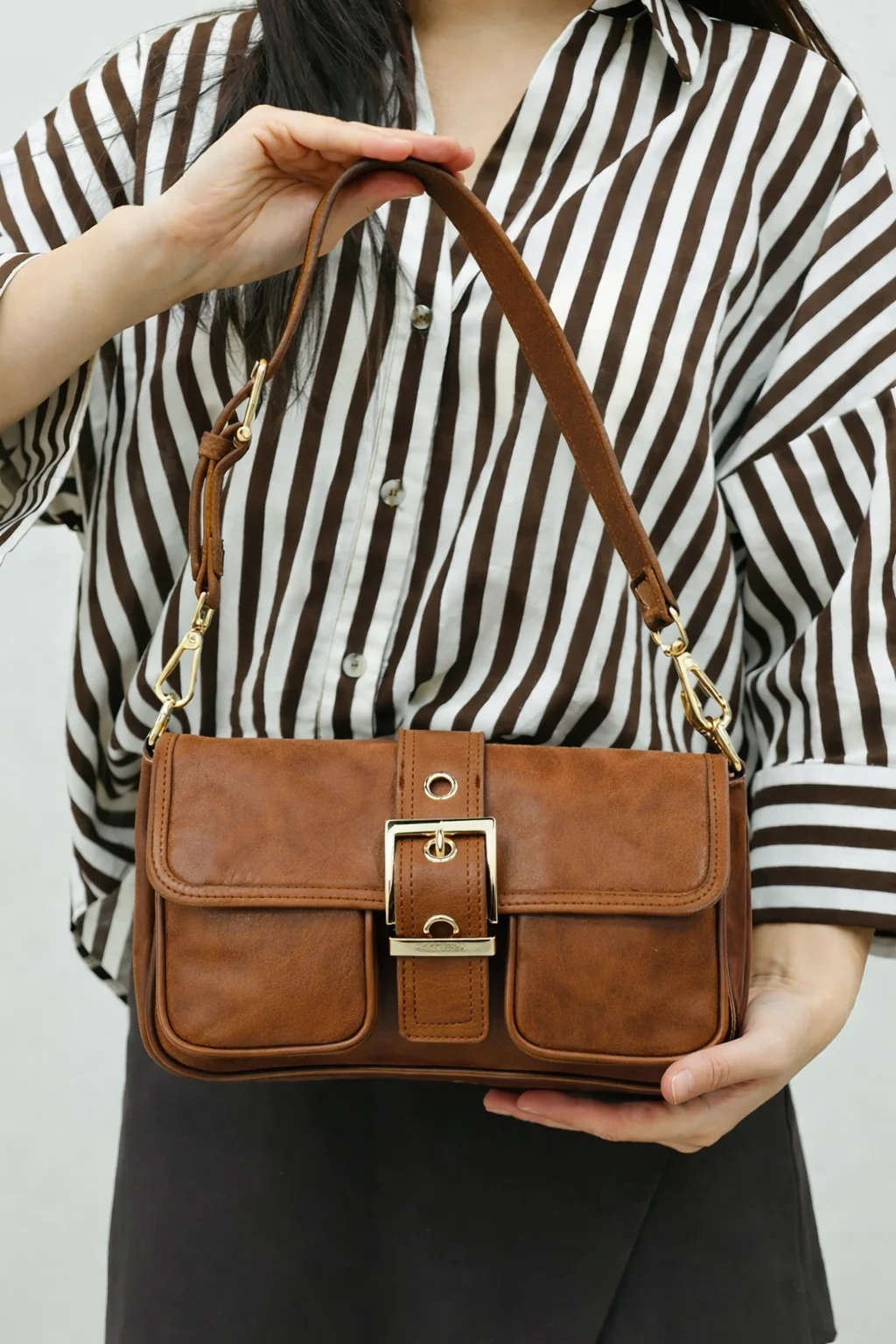 تصميم Structured بلمسة جلد راقية وبكلة ذهبية مميزة